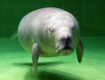 Mermaids? Oh, yes. Dugongs had been believed as Mermaids or Sirens. That's why they are in the order Sirenia. But, if you look at them, they are far from our images of Mermaids. Dugongs look more like "sea-cow" as they commonly called. Also, the name "dugong" is said to be derived from the word meaning "sea-pig" in Malayan-Javanese. Antiquities must have had extraordinary imagination or in the extreme condition when they described dugongs as Mermaids. Even Christopher Columbus first saw dugongs near the Hispaniola Island after his long voyage, he said that they were far less beautiful than he had imagined.