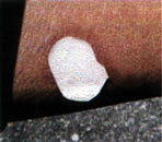 The original second circle may be the size of a dime or larger in a bigger lesion. As it grows, if you look closely, you can usually see the perfectly circular area of paler tissue. This is the zone of ischemia, which will finally loose its battle - unless you come to the rescue with a nitroglycerin patch, actually reversing the process of degradation. The red, outer ring can encompass the entire area in four to five days. Usually, an untreated lesion will turn pale as it spreads outward and constricts the vessels, producing ischemia.