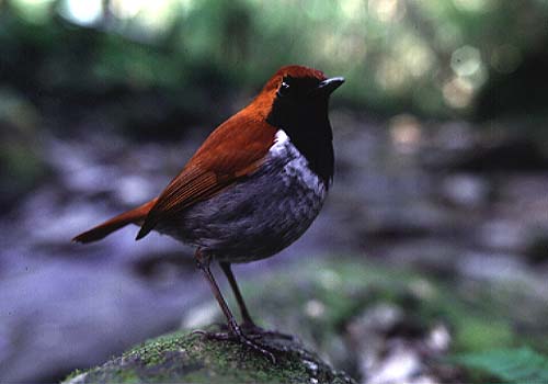 The only known habitat of the hundred or so remaining Noguchi-gera is the hilly, forested area of northern Okinawa. About 30 centimeters in length, its body has a brown coloring. One differentiation between the male and female is that the male has dark brown feathers from the forehead to the back of the head while the female has black feathers.