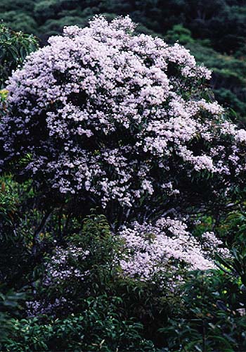 A fairly tall evergreen which grows in the mountains. It blooms with a beautiful pale purple flower in March and April.