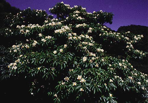 An evergreen tree which can be seen growing over a wide area near seacoasts from second stage to chinquapin forests It blooms with a pale yellow flower during the rainy season in May and June and the blooms add a touch of brightness to the rainy forest.