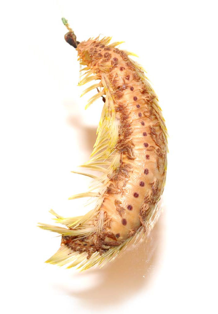 The common name for our local species, ‘fireworm’ is painfully evocative of the reaction caused to people if they are handled. Thousands of fine, hollow bristles on the sides of their body easily penetrate skin and break off. This causes painful swelling and intense itching that sometimes lasts for several hours. The exact reason for the reaction is not known for sure, but it is likely the bristles release a toxic fluid when broken.